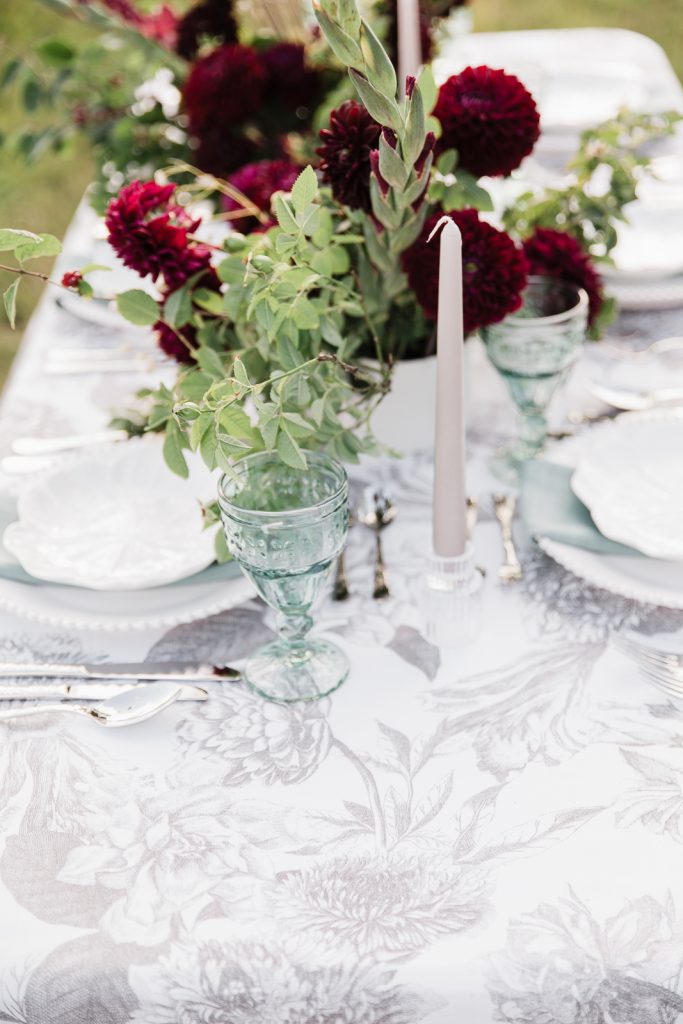 Alle Artikel kommen von uns, inklusive Tischdecken & Geschirr.